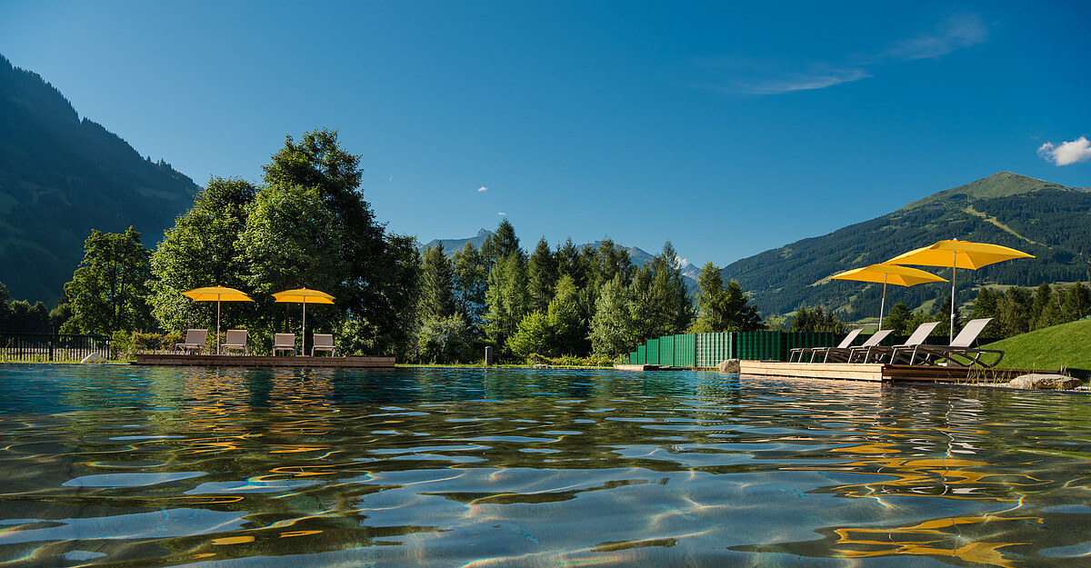 für Ruhe und Erholung mit Thermal-Innen und Außenbecken, Luftsprudelliegen, eine Sonnenwiese und Ruheoasen mit Panoramablick auf die Gasteiner Bergwelt.